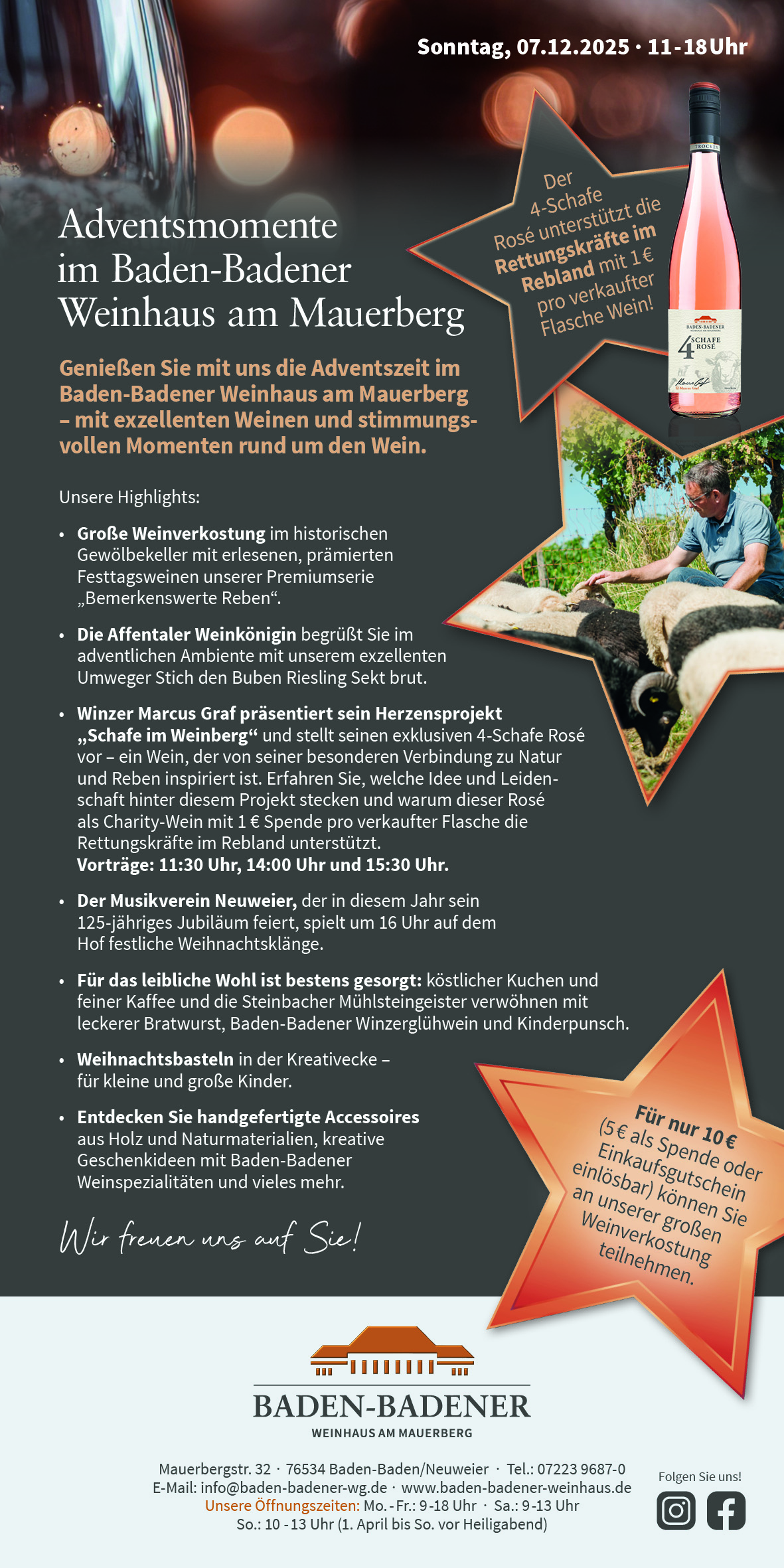 Adventsmomente im Baden-Badener Weinhaus am Mauerberg